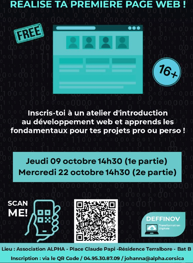 Inscris-toi à un atelier d’introduction au développement web et apprends les fondamentaux pour tes projets pro ou perso! 10 places, à partir de 16 ans.