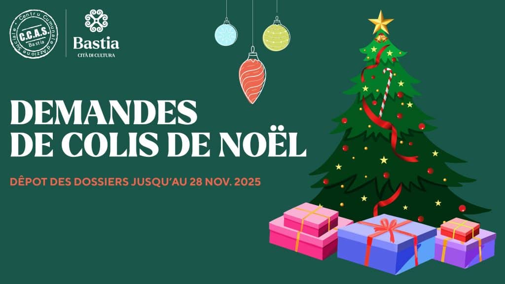 Comme chaque année la ville de Bastia et le CCAS permettent aux citoyens répondant aux critères de bénéficier du traditionnel colis de Noël, les dossiers sont à déposer du lundi 13 octobre au vendredi 28 novembre 2025.