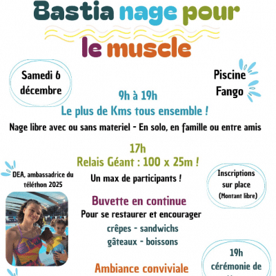 Le samedi 6 décembre à la piscine du Fango retrouvez plusieurs épreuves de natation en solo, en famille ou entre amis ! Nageons pour la bonne cause !