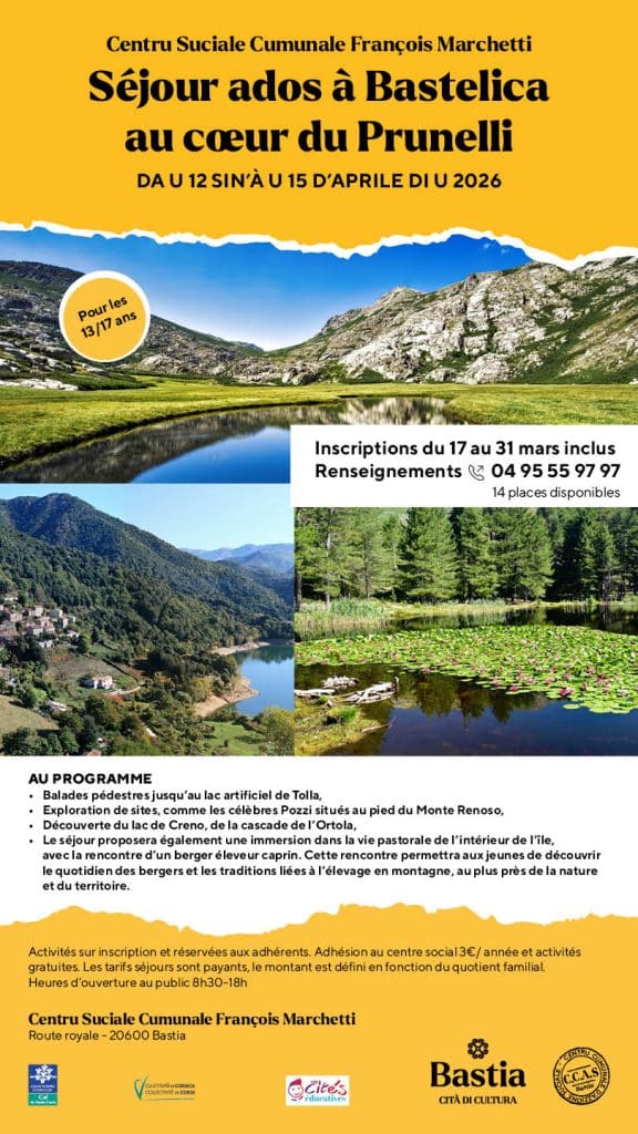 Ce séjour promet de beaux moments de découverte, de nature et de partage. Il se déroulera à Bastelica village de montagne au cœur du Punelli,