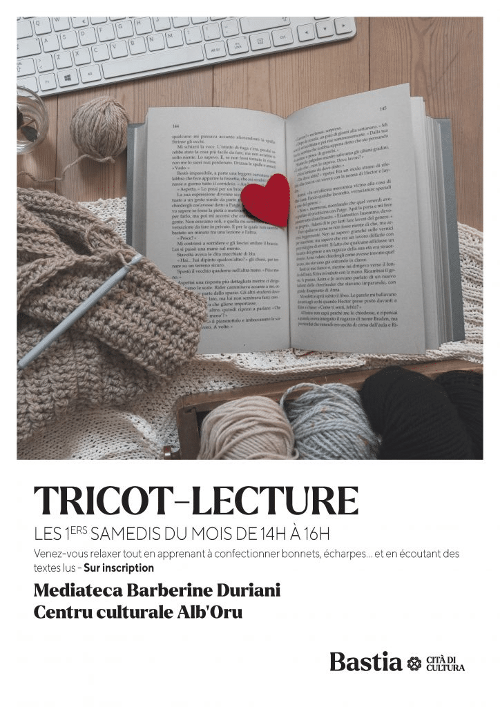 Les premiers samedis du mois à partir du 4 octobre de 14h à 16h Sur inscription Vous souhaitez partager un moment convivial ? Venez à notre atelier de tricot-lecture pour vous relaxer tout en apprenant à confectionner bonnets, écharpes, mitaines… en écoutant des textes lus.