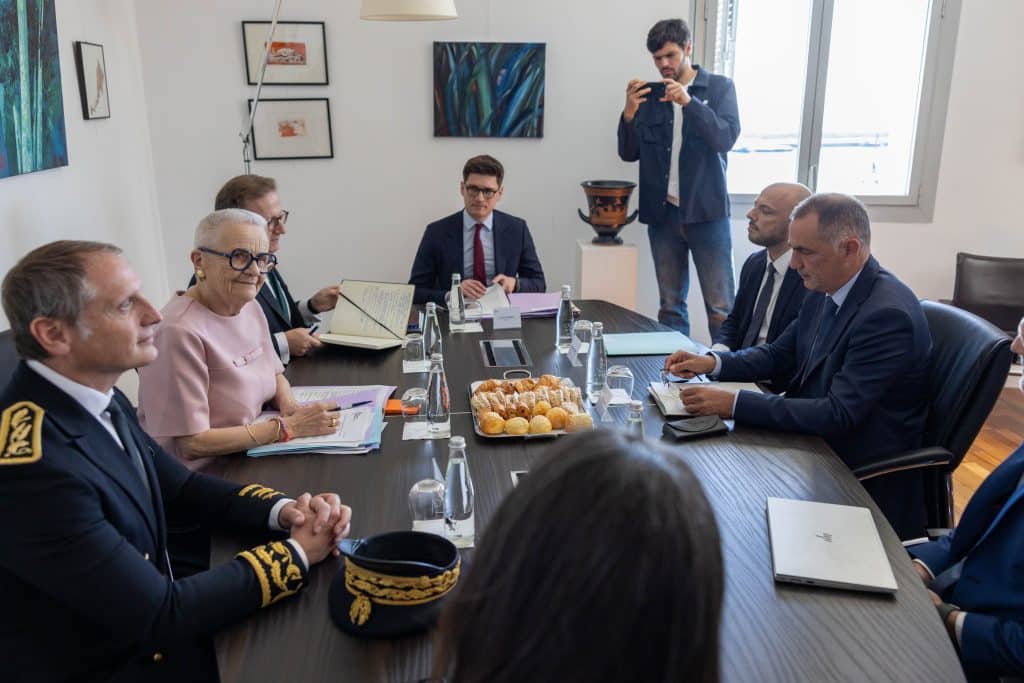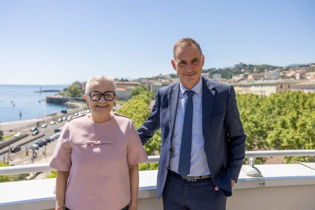 Le Maire de Bastia, Gilles Simeoni, a accueilli en Mairie, le vendredi 24 avril, la Ministre de l’aménagement du territoire et de la décentralisation, Françoise Gatel.
