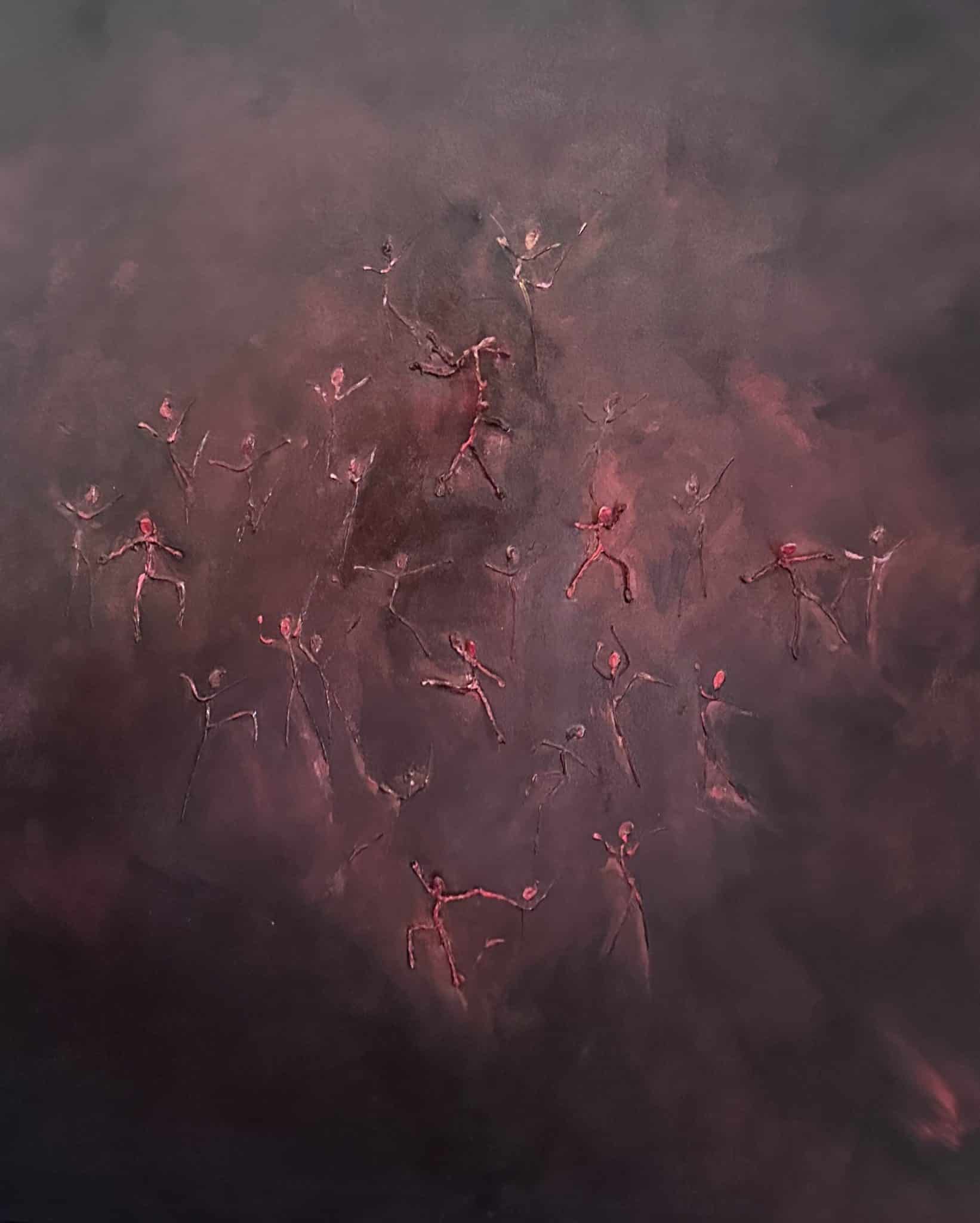 Son travail autour de la Vierge Marie, figure de la maternité et du sacré, reflète une profonde intensité et invite à une réflexion sur la résilience et l’élévation spirituelle. Ses œuvres alternent entre figuration et abstraction, évoquant des silhouettes filiformes et spectrales, traduisant un voyage intérieur vers la quête du sacré.